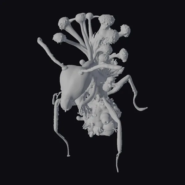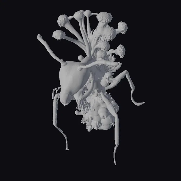 In a striking display of nature’s complex interplay, an ant’s body serves as the unlikely host to a vibrant, fungal growth. The ant, with its elongated body and spindly legs, appears caught in a moment of eerie repose, its shiny black elytra a stark contrast to the fungal proliferation. The fungus itself bursts forth in a bouquet of rounded, club-like structures, their delicate, almost translucent stems branching out in a macabre dance. This 3D model captures the intricate details of both the ant’s textured exoskeleton and the fungus’s minute, bumpy surface, inviting a closer look into a world where the lines between host and parasite blur. Ideal for projects delving into the realms of science, nature, or the fantastical, this model promises to add a layer of realism and intrigue.