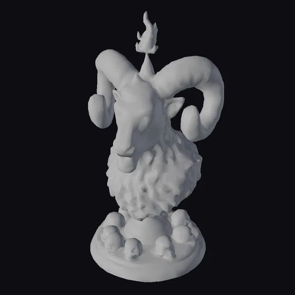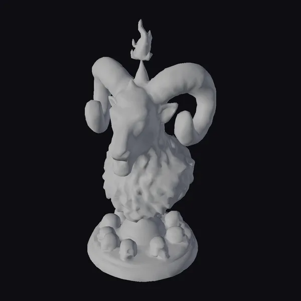 The Infernal Ram Bust presents a striking, detailed depiction of a ram’s head, its twisted horns reaching upwards as if defying the heavens. The sculpture’s metallic surface gleams with a dark, mysterious sheen, while a small flame atop the ram’s head crackles with an otherworldly energy. The base of the bust is encircled by a ring of skulls, adding to the overall sense of foreboding and dark fantasy. This model is perfect for use in games, 3D printing, VR/AR experiences, animation projects, or as a unique design element. Its intricate details and textures bring a touch of the macabre to any setting.