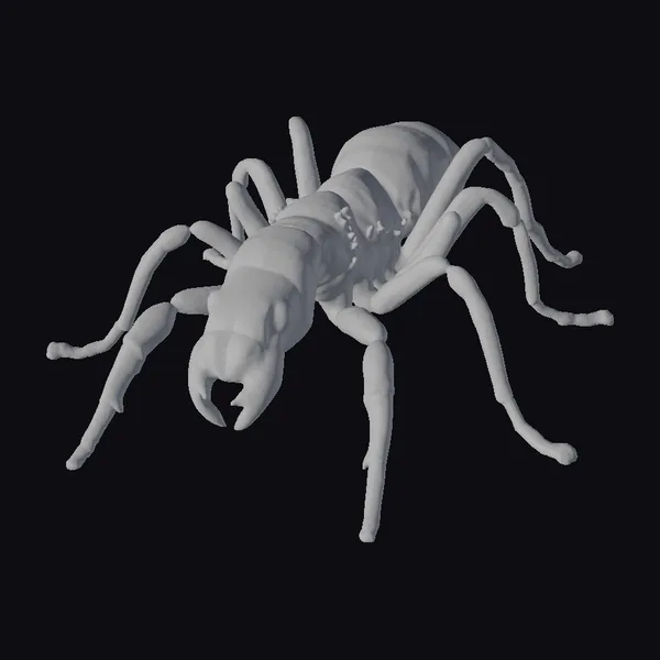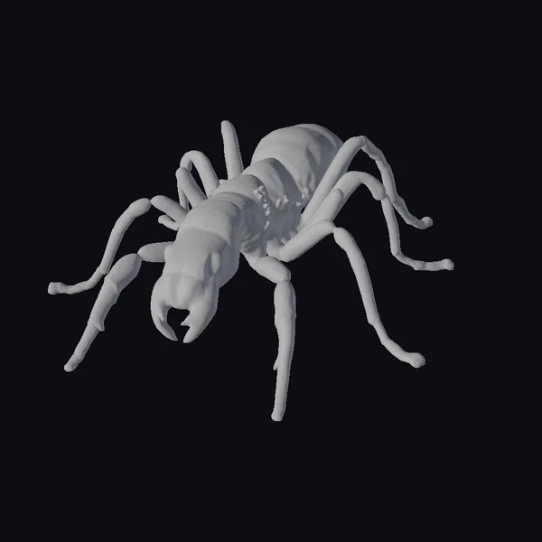 This fantastical creature boasts a detailed, realistic design, with a body that combines the armored exoskeleton of an ant with the venomous tail of a scorpion. The model’s texture showcases a blend of dark brown and vibrant orange hues, accentuated by sharp, jagged spines running along its back. The creature’s multiple legs are splayed outwards, giving it a wide stance. The scorpion-like tail is curved menacingly, hinting at its deadly potential. The intricate details, from the segmented body to the texture of the legs, make this model perfect for use in games, 3D printing, VR/AR experiences, animation, and design projects that require a touch of fantasy and danger.