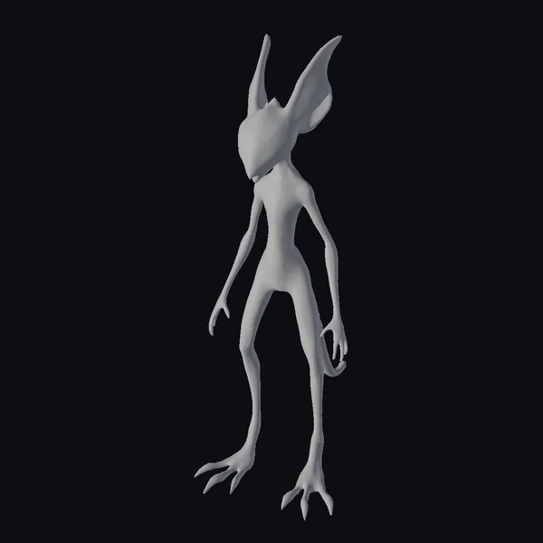 Gazing upon this iridescent alien quadruped, its slender body seems to shift and change color in the light, a true marvel of stylized design. Standing on long, spindly legs, the creature exudes an air of elegance and mystery. Its large, pointed ears and long tail are perfectly proportioned, inviting the viewer to imagine the stories this being could tell. With a simple, clean mesh, this model is game-ready and ideal for rigging practice. Its unique appearance makes it a standout addition to any 3D project, from games and animations to virtual reality experiences and architectural visualizations.