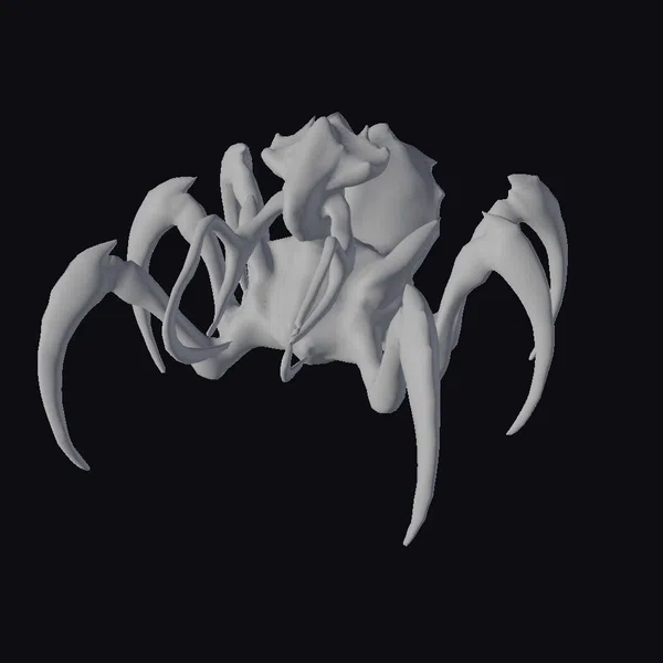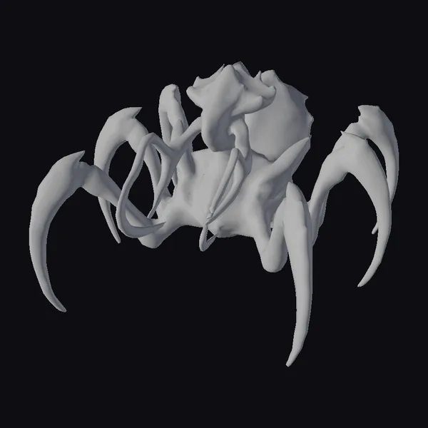 Perched menacingly, this creature showcases a blend of arachnid and extraterrestrial features. Its body is a kaleidoscope of blues and purples, with a reflective surface that seems almost liquid in the light. Eight curved claws extend from its body, each tipped with a sharp point, suggesting a formidable predator. The texture of its exoskeleton appears both chitinous and smooth, inviting the eye to explore its intricate patterns. This model would be perfect for projects requiring a sci-fi or fantasy creature, such as animations, games, or conceptual art. Its unique appearance can evoke a sense of unease or wonder, making it a versatile addition to any 3D artist’s portfolio.