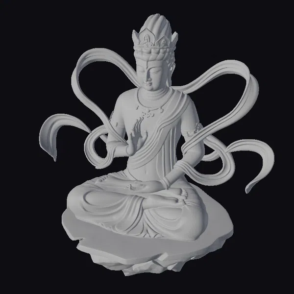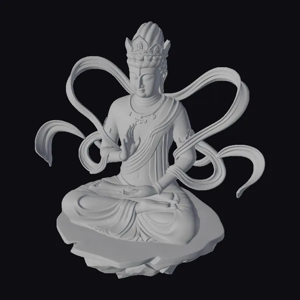 The Iridescent Crystal Buddha is meticulously detailed, with each of its multiple arms curving gracefully from its back, contributing to an aura of mystique and tranquility. The statue’s face is calm and serene, with eyes closed in meditation, adding to its spiritual ambiance. The base, stark black in contrast to the shimmering statue, enhances the visual impact. Crafted with precision, this model showcases a blend of artistic expression and spiritual symbolism. Its iridescent sheen shifts with the light, offering a mesmerizing display of colors that can add a unique touch to any digital environment, from games and animations to virtual reality experiences and architectural visualizations.