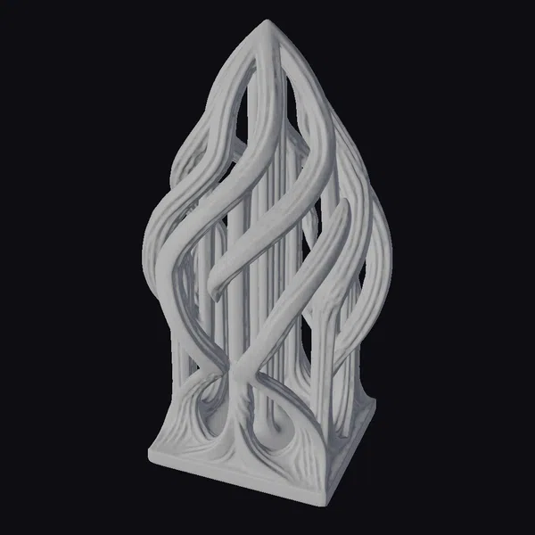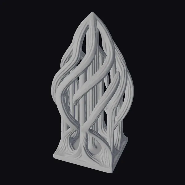 Perched atop a sturdy base, the Iridescent Crystal Spire rises in a dynamic, curved form that seems to shift and change color as it catches the light. The intricate, swirling design creates a sense of movement and energy, as if the crystal is alive and in motion. With its shimmering, metallic finish and blend of blue and purple tones, this abstract crystal structure is perfect for adding a touch of fantasy and wonder to any 3D environment, from games and animation to architectural visualizations and design projects.