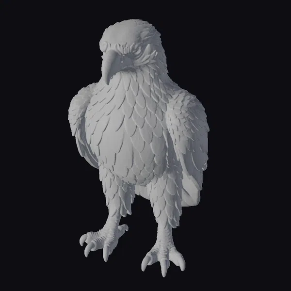 Standing proudly with its wings folded, this stunning eagle model showcases a mesmerizing array of iridescent feathers that gradate from green to purple and gold. The metallic texture gives the appearance of shimmering scales, catching the light and adding depth to the overall design. The eagle’s sharp eyes and powerful talons are meticulously detailed, conveying a sense of strength and intensity. The model’s ornate features make it perfect for use in games, animation, or 3D printing, where a touch of fantasy and luxury is desired. Its unique blend of realism and stylization ensures it will be a standout in any project.