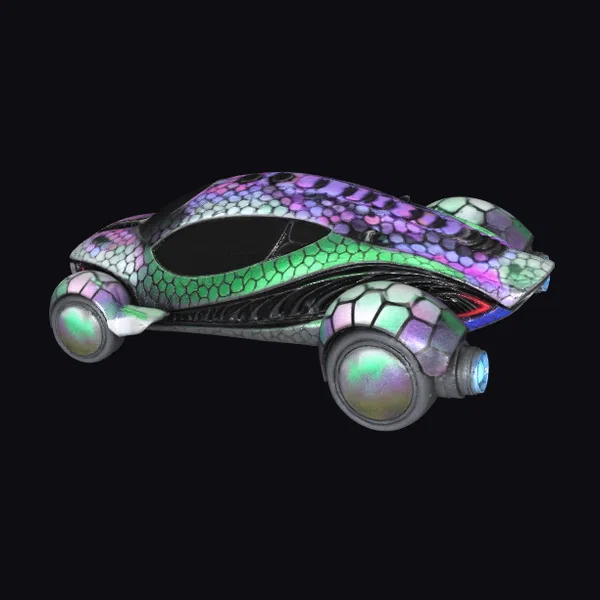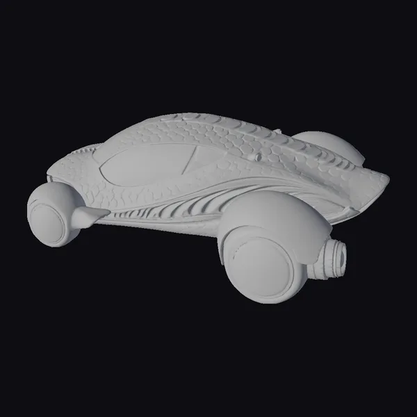 Positioned dynamically, this stunning sci-fi vehicle boasts an aerodynamic design with a predominantly purple and green iridescent scale-like exterior that shimmers under light. The vehicle’s smooth lines and curves are accentuated by large, round wheels and a distinctive oval-shaped cockpit. A small blue light at the rear adds a touch of authenticity to its futuristic appearance. Textures resemble scales or reptilian skin, adding depth and realism. Ideal for use in games, 3D printing, VR/AR experiences, animation projects, or design visualizations, this model brings a touch of interstellar adventure to any creative project.