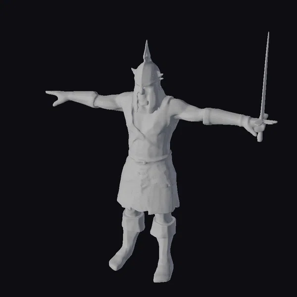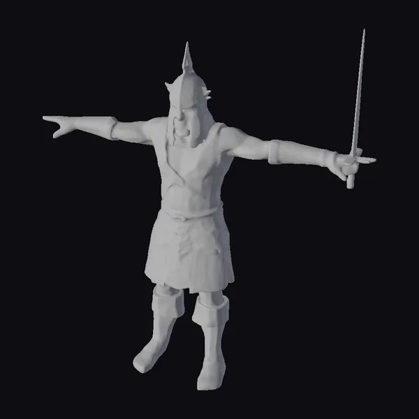 Standing tall in a T-pose, a fierce Iron Age Celtic warrior awaits your creative command. Adorned in a chainmail tunic, leather bracers, and a bronze helmet, he exudes an aura of battle-readiness. His outstretched arms and grasped sword convey a sense of dynamic potential.