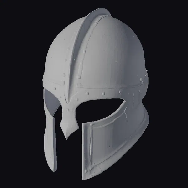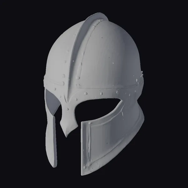 The Iron Ceremonial Helmet stands as a testament to the craftsmanship and martial prowess of a bygone era. Its smooth, dark gray dome, complete with a central raised ridge, commands respect, while the iron construction and rivets lend an air of durability and authenticity. The helmet’s design, complete with a face guard, showcases a blend of functionality and ceremonial grandeur. Ideal for projects seeking to evoke a sense of history and heroism, this model finds its place in games, 3D print projects, VR/AR experiences, animations, and historical designs, offering a detailed and immersive representation of medieval armor.