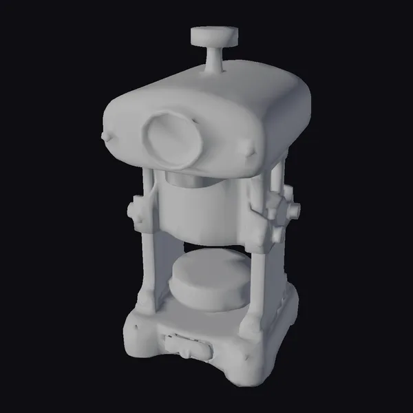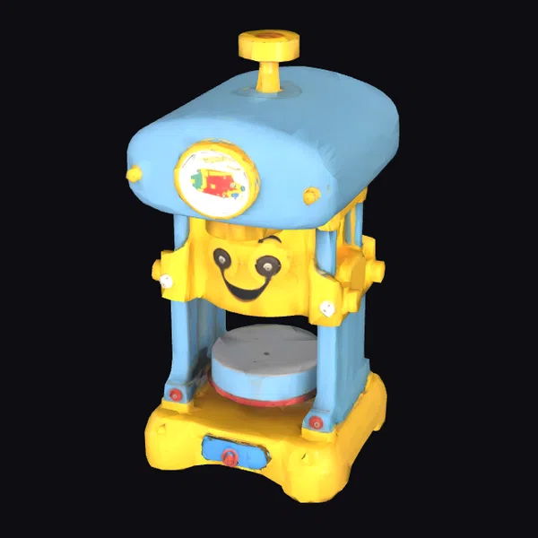 Floating dynamically on a white background, this kid’s hydraulic press model exudes a sense of fun and learning. The blue and yellow color scheme is eye-catching, with a smiley face on the front adding a touch of whimsy. The model features a large, rounded rectangular body with a smaller cylindrical press that appears ready for action. The bright red train logo on the side adds a pop of color and suggests a connection to transportation or industry. With its sturdy plastic construction and oversized design, this toy press is perfect for kids who love machines and are curious about how things work. Designers and educators will appreciate the model’s potential for teaching kids about hydraulic systems and machinery in an engaging way. Whether for a children’s museum, educational setting, or simply a fun prop, this 3D model is sure to delight.