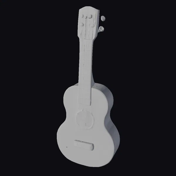 Crafted from rich Kona wood, this ukulele boasts a warm, honey-hued tone that seems to glow from within. The neck and body are meticulously detailed, with a smooth, dark fretboard that provides a striking contrast to the lighter wood grain. Delicate Polynesian carvings swirl across the body, adding an air of cultural heritage and artisanal craftsmanship. As the light catches it, the subtle texture of the wood grain shimmers, inviting you to run your fingers over its curves. Whether you’re a musician, a collector, or simply someone who appreciates the beauty of handmade instruments, this ukulele is sure to captivate. Its detailed design makes it perfect for use in games, 3D printing, VR/AR experiences, animation, and design projects.