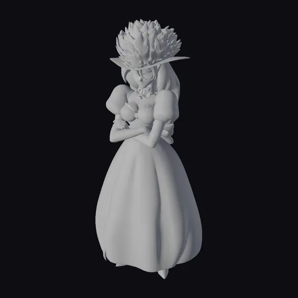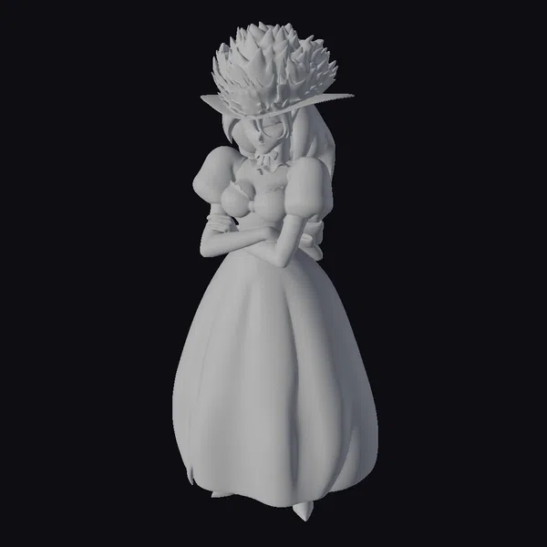 Detailed from her elegant yellow dress with puffy sleeves to the delicate feathers on her white hat, this anime-style lady is a vision of cartoon charm. Her red hair flows down her back, complementing the vibrant yellow and blue hues of her attire. The model’s pose, with arms crossed and a slight tilt, adds a touch of personality to her overall demeanor. She stands poised against a clean white background, making her the focal point of any scene. Whether you’re working on an animation project, creating a virtual environment, or designing a game, this model can bring a burst of color and life to your work.