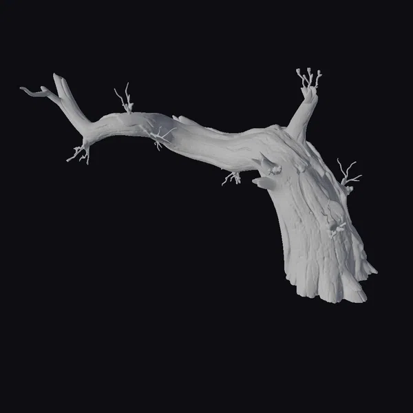 Perched in a dynamic pose, this large ancient tree branch stretches out with a natural, slightly twisted form that commands attention. The bark is deeply grooved and rugged, with hints of lighter wood peeking through in places, suggesting a history of harsh weather conditions. Small, bare shoots sprout from various points, indicating the early stages of regrowth. The branch’s texture is richly detailed, capturing the complex interplay of light and shadow on its surface. Ideal for use in games, 3D print projects, VR/AR experiences, animations, or architectural designs, this model brings a touch of the natural world to any digital environment.