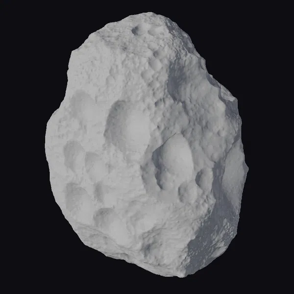 Positioned dynamically to showcase its textured surface, this large rocky asteroid features a multitude of craters and indentations, telling the story of eons of cosmic impacts. The gray, stone texture is meticulously detailed, with highlights that suggest a rugged, unforgiving environment. The model’s proportions are accurate, capturing the irregular shape typical of asteroids. The surface’s roughness and cratered appearance are striking, making it an excellent choice for projects requiring a realistic asteroid. Ideal for use in games, 3D printing, VR/AR experiences, animations, or design projects, this model brings an element of authenticity to any outer space setting.