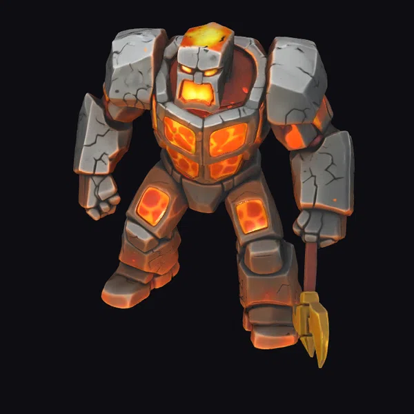 Standing tall with a powerful build, the Lava Robot Warrior exudes an aura of intense heat and energy. Its body is encased in a cracked, metallic gray exoskeleton, with glowing orange lava visible through openings in the chest, arms, and legs. The robot’s face is a menacing visage with glowing yellow eyes and an open mouth, revealing a fiery interior. A golden, sharp-edged tool hangs at its side, ready for battle. This model is ideal for use in games, animations, and designs that require a blend of sci-fi and fantasy elements. Its detailed textures and unique lava effect make it a standout addition to any project.