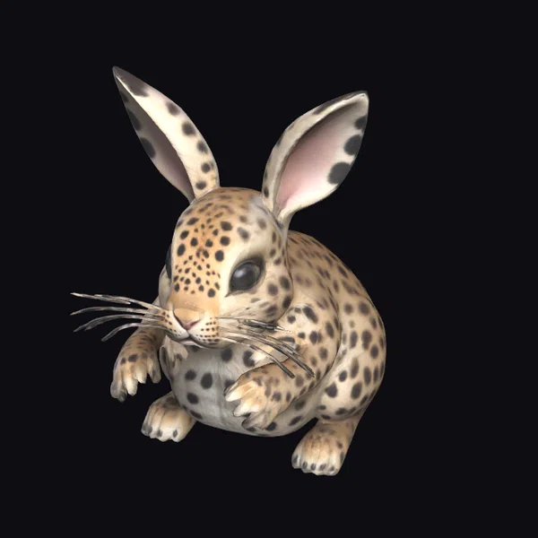 This stunning 3D model of a leopard-skin bunny presents a captivating blend of realism and fantasy. The bunny stands in a T-pose, showcasing its full body and allowing for a comprehensive view of its detailed features. The fur is meticulously textured with leopard-like spots, transitioning smoothly across its body, from the soft-looking fur on its belly to the detailed spots on its back. Its large, perky ears are adorned with the same spot pattern, adding to its endearing appearance. The eyes are big and expressive, contributing to the bunny’s irresistibly cute demeanor. The model is highly detailed, with careful attention to the bunny’s whiskers, paws, and nose, making it suitable for a variety of applications, including game development, animation projects, virtual reality experiences, and 3D printing. Its realistic appearance and detailed features make it an excellent choice for projects requiring a lifelike or stylized animal character.