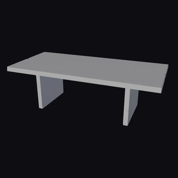 Positioned dynamically to showcase its clean lines, the table boasts a warm, light oak wood finish with subtle grain textures running across its lengthy top. Two wide, slab-style legs, oriented perpendicular to the tabletop, provide robust support while maintaining the minimalist aesthetic. The model’s attention to detail, from the gentle sheen on the wood to the crisp edges of the tabletop, makes it an excellent choice for designers and artists. Ideal for use in interior design projects, architectural visualizations, or 3D animations, this model brings a touch of modern elegance to any setting.
