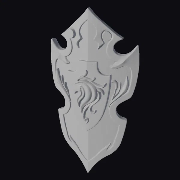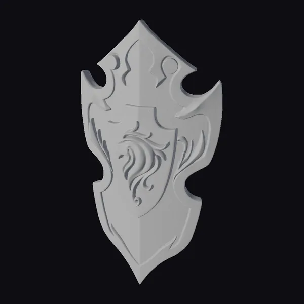 The Lion Crest Shield boasts an imposing design, featuring a proud lion’s head at its center, surrounded by ornate gold filigree that dances across the shield’s surface. The gray metal provides a strong foundation, while the gold accents shine with a sense of luxury and power. The shield’s pointed top and bottom add to its sense of dynamism, as if ready to charge into battle. This stunning shield is perfect for use in games, 3D printing, VR/AR experiences, animation, and design projects, where a symbol of courage and strength is needed.