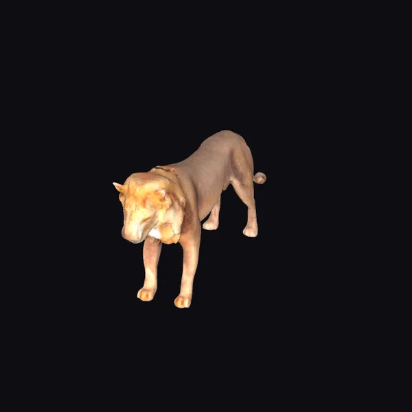 The lioness stands poised, her body language exuding a sense of calm strength as she strides forward. Her coat is a rich, golden-brown hue with darker shades along her back, gradually lightening towards her underbelly and paws. The texture of her fur appears soft yet resilient, catching the light to reveal subtle depth and dimension. Her eyes are cast downward, fixed on something in the distance, adding an air of intrigue to her already compelling presence. This model is perfect for projects requiring a realistic portrayal of wildlife, such as animations, games, or educational materials.