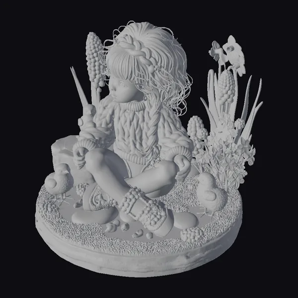 The Model “Little Girl with Chicks” is also available upon request in many other 3D formats, such as 3MF, BLEND, FBX, OBJ, USDZ and others, making it easy to integrate into your project.