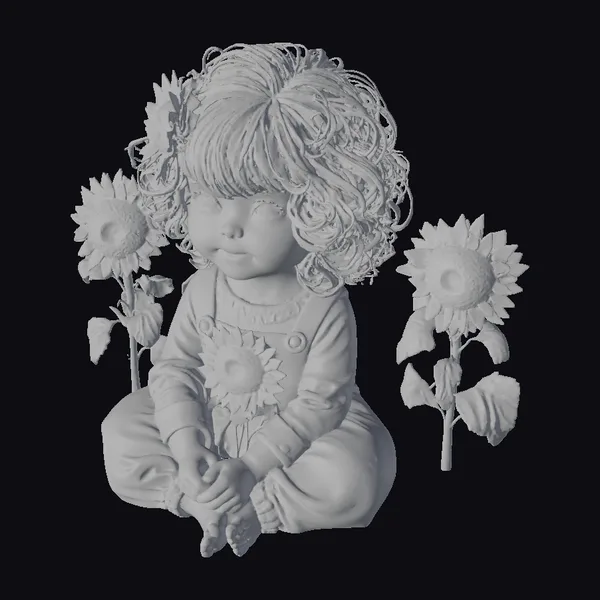 The Model “Little Girl with Sunflowers” is also available upon request in many other 3D formats, such as 3MF, BLEND, FBX, OBJ, USDZ and others, making it easy to integrate into your project.