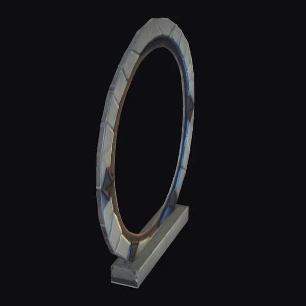 Positioned dynamically on a sturdy base, the portal’s oval frame showcases a mesmerizing blend of metallic and abstract elements. The low-poly aesthetic lends a stylized, modern feel, while the geometric patterns evoke a sense of advanced technology. As a 3D model, it’s poised to elevate sci-fi projects, architectural visualizations, or gaming environments. Its unique design makes it an excellent choice for designers seeking to infuse their work with a touch of futurism.
