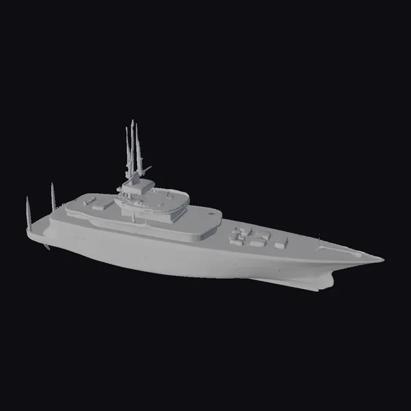 Perched atop a pristine white hull, the expansive brown deck of this magnificent yacht beckons with promises of sun-kissed adventures. A series of sleek white lounge chairs invites relaxation, while the streamlined design and bold red trim evoke a sense of high-speed performance. With its array of antennas and communications equipment, this vessel appears ready to navigate the world’s oceans in style. Ideal for use in games, 3D environments, or architectural visualizations, this model brings a touch of high-end nautical elegance to any project.