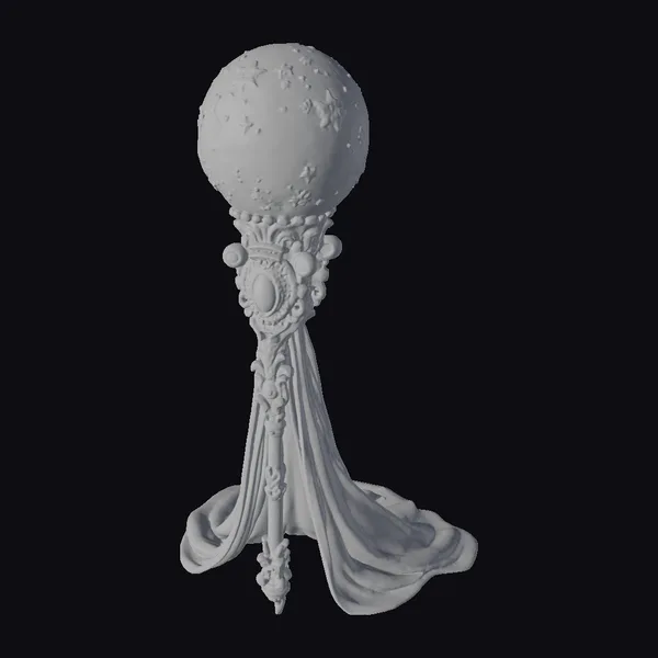 The Magical Purple Staff Artifact stands tall, its purple orb glowing with an otherworldly energy, speckled with golden stars that seem to twinkle in the light. The staff’s handle is a masterpiece of intricate design, with gold accents and ornate details that suggest a rich history of mystical power. A flowing black cloak drapes elegantly from the staff’s midpoint, adding a sense of drama and movement. At the staff’s base, a delicate purple crystal hangs suspended, casting a subtle glow. This staff is perfect for game developers, animators, and designers seeking to add a touch of magic to their projects. Its detailed textures, precise modeling, and imaginative design make it an exceptional asset for 3D modeling and animation projects.