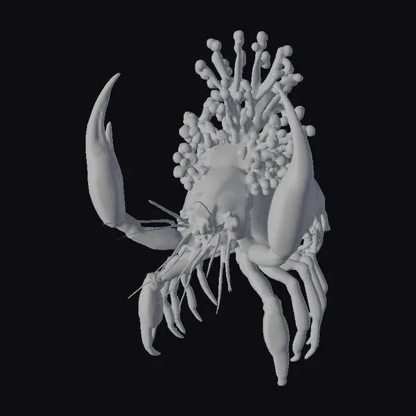 Perched regally, the shrimp king showcases its impressive, curved claws and detailed, segmented body, evoking a sense of ancient, marine grandeur. The coral-like protrusion on its back adds an air of mystique, as if this creature has been plucked straight from a vibrant, underwater kingdom. With its realistic texture and lifelike pose, this model is perfect for games, 3D printing, VR/AR experiences, and animations that demand a touch of oceanic splendor. Its highly detailed appearance ensures a captivating presence in any visual project.