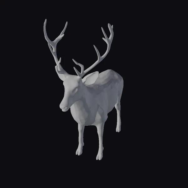 The stag’s robust body is rendered in warm, earthy tones, with a subtle gradient of brown hues that evoke a sense of natural authenticity. Its large, alert ears and expressive eyes are meticulously detailed, while the impressive antlers add a regal touch to its already commanding presence. The model’s realistic texture and shading create a lifelike appearance, making it an excellent choice for projects requiring a genuine wildlife aesthetic. Ideal for use in games, animations, or as a design element in outdoor or nature-themed environments.