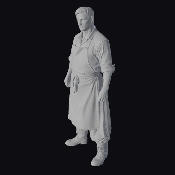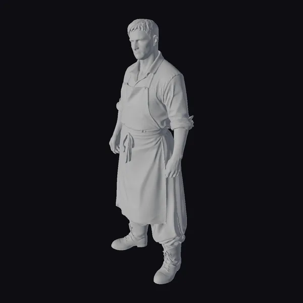 The Model “Man in Dirty Apron” is also available upon request in many other 3D formats, such as 3MF, BLEND, FBX, OBJ, USDZ and others, making it easy to integrate into your project.