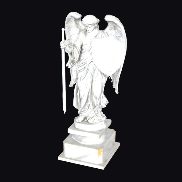 Crafted with meticulous attention to detail, this marble angel sculpture stands proudly on a multi-tiered base, its surface reflecting a blend of smooth and rough textures. The angel’s facial features are serene, with a subtle, enigmatic smile. Its wings, spread in a dynamic pose, showcase intricate feather details. Clad in a flowing robe, the angel holds a sword in one hand and a shield in the other, symbolizing its role as a guardian. The marble’s subtle veining adds a layer of realism, while the broken sections hint at a storied past. Ideal for use in historical, mythological, or artistic projects, this model brings a touch of classical elegance to games, animations, or architectural visualizations.