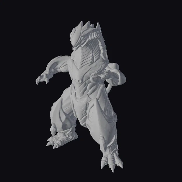 Standing tall with its powerful legs and sharp claws, this mechanical monster exudes an aura of destruction. The blue and red body, covered in spiky armor plating, seems almost invincible. The white teeth-like protrusions on its head and the red glowing eyes give it a menacing look, as if it’s ready to unleash chaos. The intricate details, from the texture of the armor to the sharpness of the claws, make this model perfect for use in games, 3D printing, VR/AR experiences, animation, and design projects. The mechanical enhancements on its body suggest a blend of organic and synthetic elements, making it a fascinating subject for any sci-fi or fantasy setting.