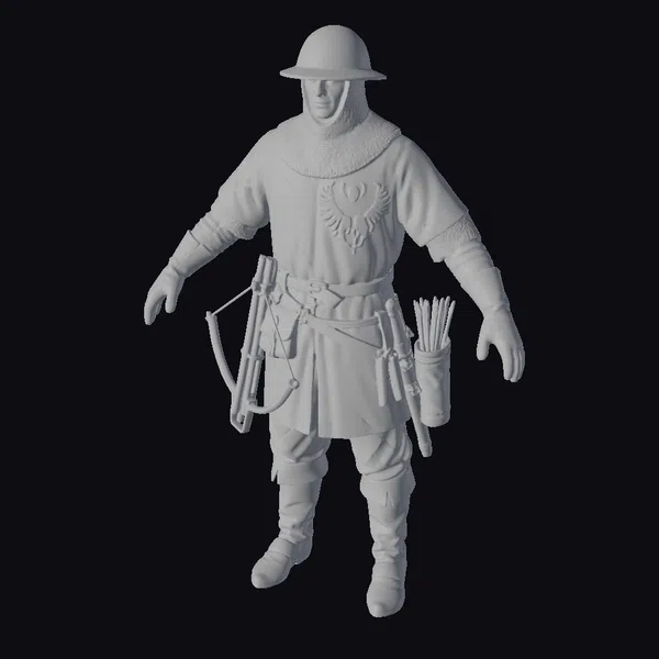 The Model “Medieval Crossbowman Soldier” is also available upon request in many other 3D formats, such as 3MF, BLEND, FBX, OBJ, USDZ and others, making it easy to integrate into your project.