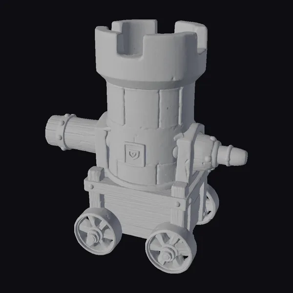 Perched atop a wooden cart, the stone turret of this medieval fortress cannon cart stands imposing, its battlements reaching towards the sky like jagged teeth. The cannon itself, crafted from dark wood and reinforced with metal bands, appears ready to unleash a barrage of firepower. The model’s textures – from the rough stone to the smooth wood and metal accents – are meticulously detailed, inviting you to explore every nook and cranny. Whether you’re creating a medieval landscape for a game, crafting a historical scene for animation, or designing a fantasy world, this cannon cart model is sure to add a touch of authenticity and drama. Its sturdy base and mobile wheels ensure it can be positioned in a variety of settings, from castle walls to open battlefields.