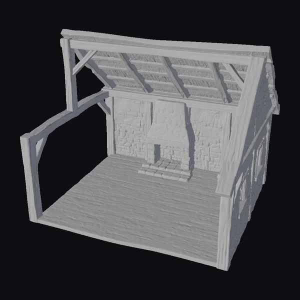 Gaze upon the intricate details of this medieval peasant house interior, where the rustic charm of a bygone era comes alive. The thatched roof, supported by sturdy wooden beams, casts a warm glow over the stone walls and wooden floor. A prominent fireplace stands at the heart of the room, its stone hearth and chimney a testament to the ingenuity of medieval craftsmanship. The walls, constructed from rough-hewn stones, add a sense of ruggedness to the space, while the wooden floor and beams bring warmth and coziness. This 3D model is perfect for game developers, architects, and designers seeking to create immersive and authentic environments. Use it to craft compelling game scenes, visualize historical settings, or inspire your next design project.