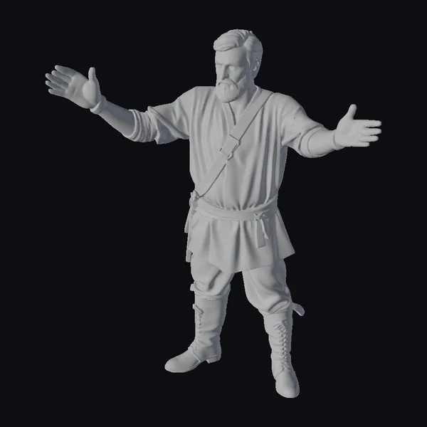 Standing tall in a T-pose, this meticulously crafted medieval peasant model showcases a richly detailed ensemble. His dark brown tunic, complemented by a leather belt and strap, pairs with earthy green pants and sturdy black boots. The model’s short, dark hair and beard add to his rustic charm. The hyper-realistic textures and lighting bring an unparalleled level of authenticity to this character model. Ideal for use in historical animations, games, or architectural visualizations, this model is poised to add depth and realism to any project. The T-pose position allows for easy integration and posing in various scenes.