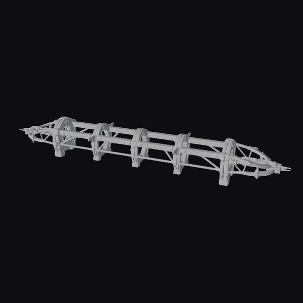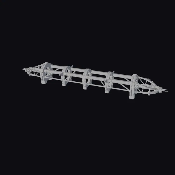 Positioned dynamically, the medieval siege engine showcases intricate details: sturdy wooden beams are reinforced with metal straps and rivets, while sharp spikes protrude menacingly from both ends. The framework, a latticework of metal and wood, speaks to the ingenuity and brute force of medieval warfare. When rendered, the model’s textures come alive under realistic lighting, highlighting the contrast between the smooth wood and rugged metal. Ideal for historical reconstructions, games, or animations, this model brings the intensity of medieval sieges to any project.