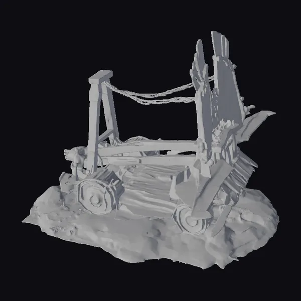 Perched atop a rugged, earthy base, this meticulously crafted trebuchet model embodies the raw power and engineering prowess of medieval warfare. The wooden frame, worn and weathered to a warm, earthy tone, showcases the intricate details of its construction, from the sturdy A-frame to the complex system of chains and pulleys. Rusted metal components add a touch of realism, suggesting countless battles and sieges. As the light catches its surface, the texture of the wood and metal seems to shift, inviting the viewer to explore every nook and cranny. Ideal for game developers, animators, and designers seeking to infuse their projects with a sense of history and authenticity, this model is poised to become a pivotal element in any medieval setting.