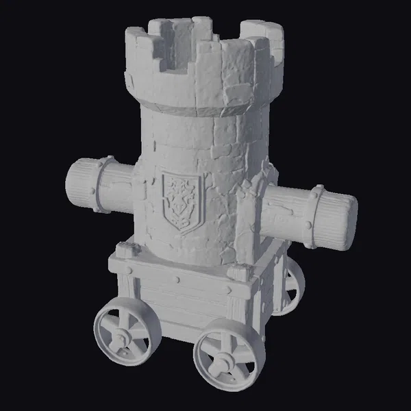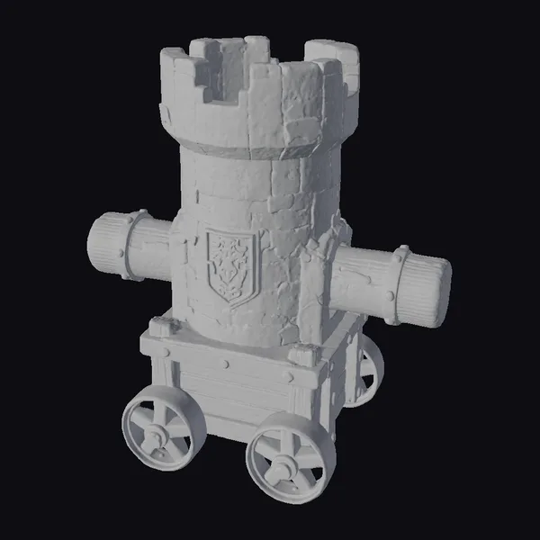 Crafted with meticulous attention to detail, this medieval stone fort cannon model showcases a blend of robust stone masonry and wooden cart construction. The cannon’s body, made from white stone blocks, features a shield emblem and is mounted on a wooden base equipped with metal-rimmed wheels for mobility. Two cannons protrude from its sides, ready for action. This model is perfect for game developers, animators, and designers looking to add a touch of medieval authenticity to their projects. Its high level of detail makes it suitable for close-up shots in animations, games, or architectural visualizations.