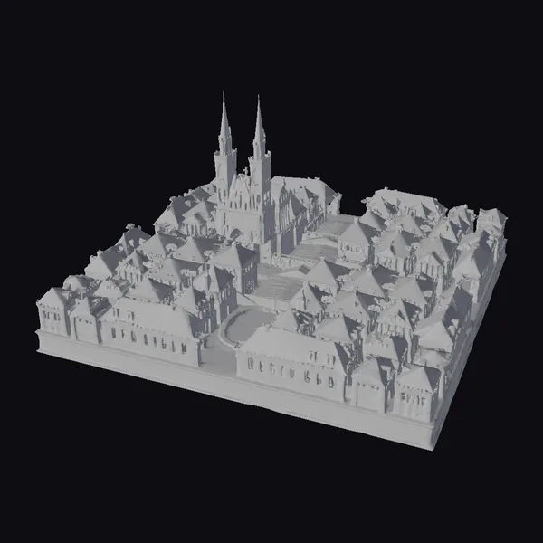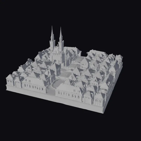 Imagine yourself standing in the midst of a bustling medieval town square, surrounded by the quaint charm of centuries-old buildings. This 3D model meticulously captures the essence of a European town from the medieval period, with its cobblestone streets, red-tiled roofs, and the imposing presence of a central church. The church, with its two striking spires reaching towards the sky, serves as the focal point of the scene, while the surrounding buildings, each with their unique architectural details, contribute to the vibrant atmosphere of the town. The model is perfect for projects requiring a historical setting, such as animations, games, architectural visualizations, or virtual reality experiences. Its detailed textures, precise proportions, and realistic lighting make it an invaluable asset for creators looking to transport their audience to a bygone era.