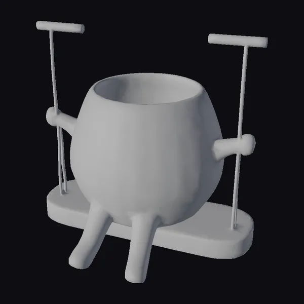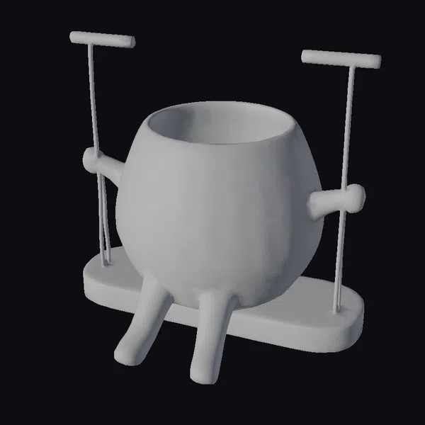 Perched on a flat base, this stylized planter boasts a bulbous, melting form with three sturdy legs that appear to be frozen in mid-flow. The smooth, creamy texture and soft curves of the wax-like material evoke a dreamy, surreal atmosphere. Two metal handles, reminiscent of laboratory equipment, add a touch of industrial whimsy to the design. The planter’s abstract shape and flowing lines make it a versatile decorative object that can add a dash of personality to any room. Whether used as a planter, a centerpiece, or simply a conversation piece, this stylized model is sure to spark imagination and inspire creativity. Its unique design makes it perfect for 3D printing, animation, or virtual reality applications.