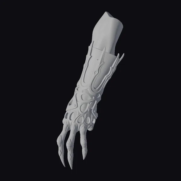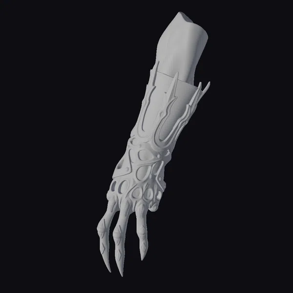 Crafted with meticulous attention to detail, this metallic arm glove showcases an intricate mesh pattern that elegantly covers the arm from the elbow down to the fingertips. The glove features elongated, sharp nails painted in a dark hue, adding to its edgy, cyberpunk aesthetic. The metallic surface gleams with a subtle sheen, suggesting a durable and high-tech material. The ergonomic design ensures a natural fit, making it suitable for various applications, including game character design, virtual reality experiences, 3D animation projects, and architectural visualizations. Its unique blend of fashion and function makes it a standout piece for designers looking to infuse their work with a touch of sci-fi flair.