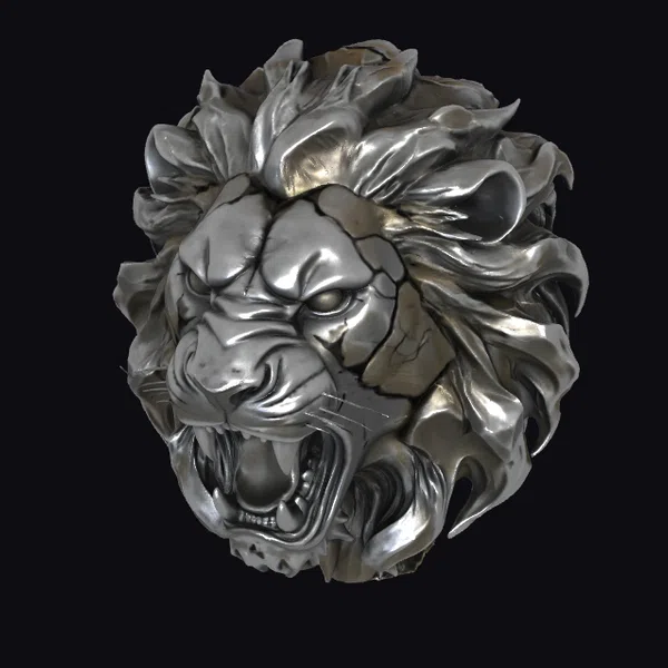 This stylized metal lion head sculpture captures the essence of ferocity and artistry in a single, stunning piece. The lion’s face is contorted in a fierce roar, showcasing sharp teeth and an intense gaze. The mane, intricately designed with flowing metallic strands, adds a dynamic texture to the overall piece. The model’s detailed features, from the wrinkles on the face to the texture of the metal, make it a compelling addition to any collection or project. Whether for artistic display, game development, or animation, this sculpture brings a touch of wild elegance and strength. Its abstract yet realistic design allows for versatile applications, making it a unique find for those seeking a blend of fantasy and realism.
