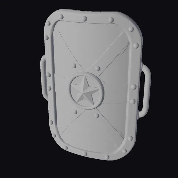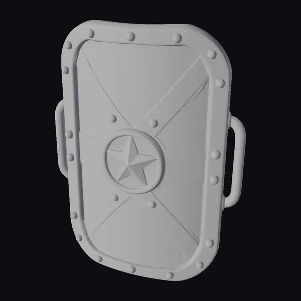 Detailed with precision, this shield boasts a mesmerizing metallic blue surface, accentuated by a prominent silver star at its center. The shield’s design features crisscrossing silver straps that add to its defensive aesthetic. Two sturdy handles on either side ensure it can be wielded with confidence. The shield’s riveted edges and bold color scheme make it an eye-catching piece, perfect for use in games, animations, or as a design reference. Its stylized appearance lends itself to various creative applications, from fantasy settings to superhero narratives.