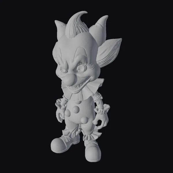 Gaze into the unsettling world of this metallic clown, characterized by its vibrant blue body, adorned with red accents and a shiny finish. The model’s intricate details, from the ruffled collar to the oversized shoes, showcase a blend of playful and eerie elements. Its pose, with hands slightly bent and a forward lean, suggests a readiness to engage or pounce, adding to the overall sense of unease. This stylized character model is ideal for use in games, animations, or 3D prints that require a unique, horror-tinged aesthetic. The clown’s design, with its mix of bright colors and metallic sheen, offers endless possibilities for creative projects.