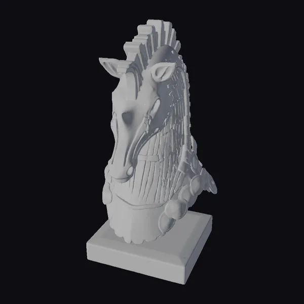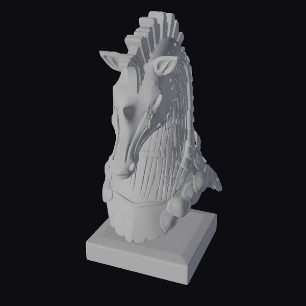 Perched atop a sturdy wooden base, the horse head sculpture commands attention with its striking green metallic finish, complemented by the warm, earthy tones of the wooden mane and accents. The intricate details, from the flowing mane to the delicate metal bands, showcase exceptional craftsmanship. This piece is perfect for fantasy game developers, animators, and designers seeking to add a touch of magic to their projects. Its unique blend of materials and textures makes it an excellent choice for 3D printing, animation, and virtual reality applications.
