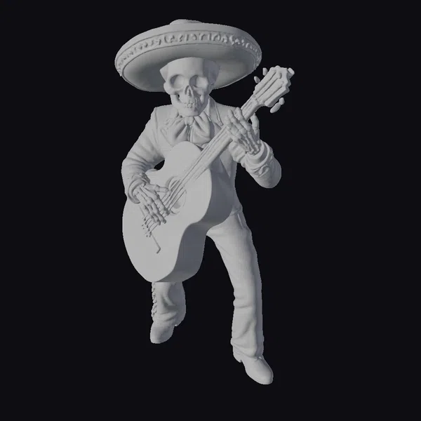 The Model “Mexican Skeleton Guitarist” is also available upon request in many other 3D formats, such as 3MF, BLEND, FBX, OBJ, USDZ and others, making it easy to integrate into your project.