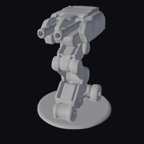 Positioned dynamically on a circular metallic base, the turret’s body is a marvel of industrial and military fusion. Its olive-green hue, akin to military hardware, contrasts with the silver of the base and the barrels, suggesting a blend of earthy camouflage and high-tech armament. The model’s surface details hint at a complex assembly of metallic parts, with visible bolts and plates adding to its robust appearance. The turret’s design, with its mechanized limbs and dual barrels, evokes a sense of readiness and defense. This model is perfect for game developers, animators, and designers looking for a futuristic military asset with a strong presence.