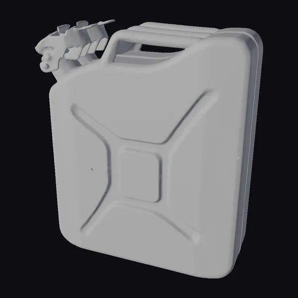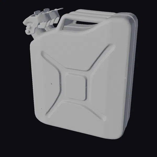 Positioned at a slight angle, the military jerry fuel can showcases its robust design and detailed features. The metal body, rendered in a realistic olive green hue, boasts a textured surface and raised sections that catch the light, giving it a lifelike appearance. A ‘JERRY’ label with a distinctive eagle emblem is prominently displayed on the front, adding to the can’s authenticity. The cap, complete with a handle, sits securely on top, ready for action. This 3D model is perfect for use in various projects, such as game development, architectural visualizations, or film and animation productions, where a realistic and detailed fuel can is required. Its high level of detail and realistic appearance make it an excellent choice for designers and creators looking to add a touch of realism to their work.