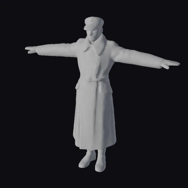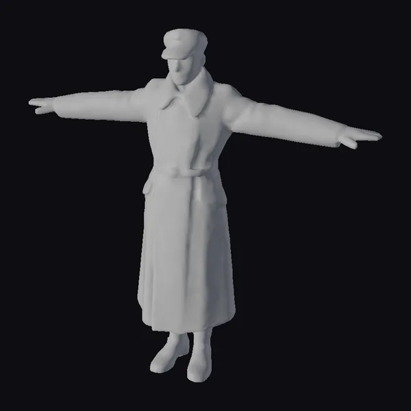 The Model “Military Man in Coat” is also available upon request in many other 3D formats, such as 3MF, BLEND, FBX, OBJ, USDZ and others, making it easy to integrate into your project.