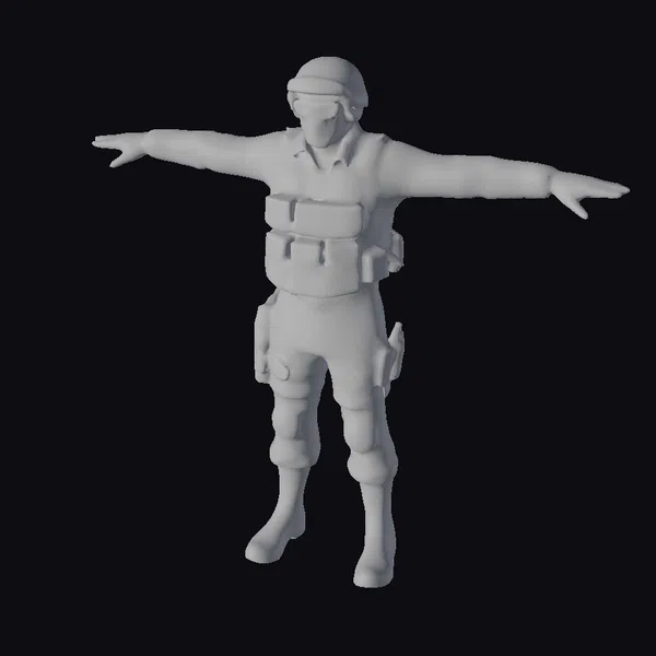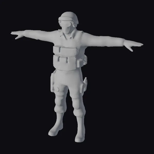 The Model “Military Mercenary T-pose” is also available upon request in many other 3D formats, such as 3MF, BLEND, FBX, OBJ, USDZ and others, making it easy to integrate into your project.